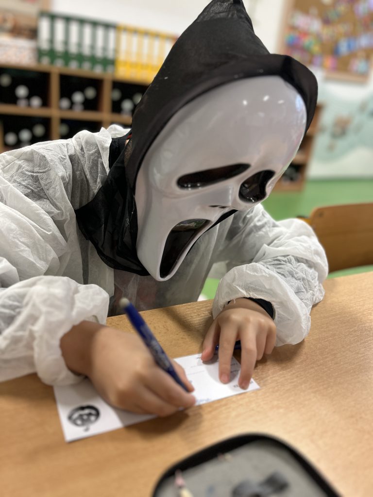 Třída 3.A prožila příjemný a netradiční Halloweenský den plný strašidelné zábavy a aktivit. Začátek dne nám zpříjemnil dopis od dušíka Otíka, který nás celým dnem prováděl. Děti i paní učitelky se proměnily v různé postavičky.