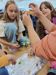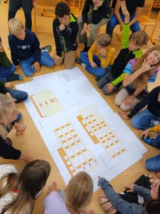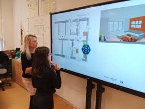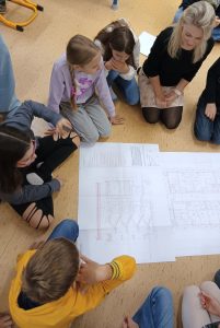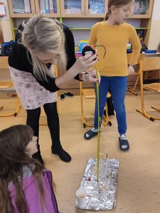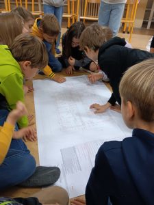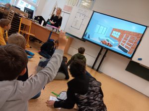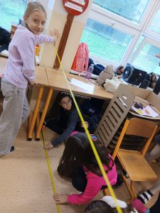 Žáci se dozvěděli, co je půdorys a řez, odhadli váhu výkresové dokumentace, měřili prostor třídy metrem, pásmem, laserovým zaměřovačem i pomocí aplikace v iPhonu, vyzkoušeli si postavit rozhlednu z netradičního materiálu a uvědomili si, co je důležité při její stavbě, seznámili se se zajímavými rozhlednami ve světě i v okolí. Ověřili si převody jednotek délky a vyzkoušeli si orientaci v prostoru v designových interiérech.