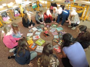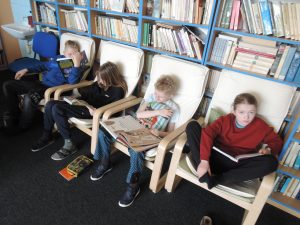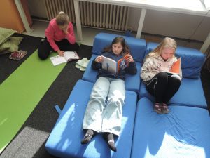 5.A už měla možnost využít box plný úúúúúúúúúžasných knih a uspořádala si dvoudenní čtecí maraton. Přálo nám počasí a část tohoto projektu jsme tak „pročetli“ venku na sluníčku.