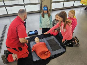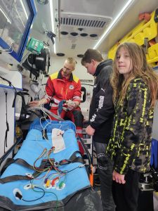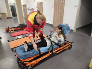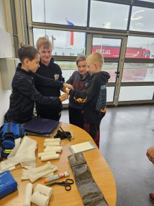Alespoň teď víme, jak se asi cítí záchranář nebo hasič, který je mokrý a zmrzlý. Uvnitř však bylo teploučko a ve čtyřech skupinách se děti dozvěděly, jak poskytnout první pomoc, seznámily se se zdravotními pomůckami a podívaly se do sanitky.
