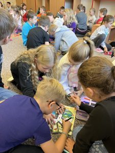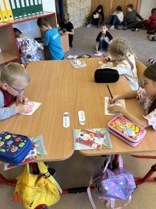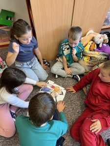 Děti vytvořily smíšené skupiny, kde starší děti s velkou ochotou a trpělivostí pomáhaly těm nejmenším. Tato spolupráce byla velkým přínosem tohoto dne. Děti si společně zahrály slovenský kvíz, naučily se nová slova, seznámily se s polskou pohádkou Bolek a Lolek, pohádkou Macko Uško ve slovenštině a další. Společně v týmech děti vyzdobily jedno písmeno, které nám dohromady dalo právě název projektové dne: Den jazyků.