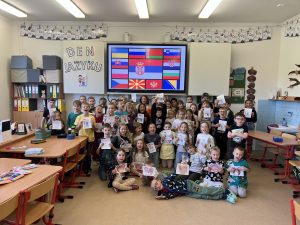 V rámci projektového dne jazyků věnovanému slovanským jazykům se třeťáci společně s dětmi z přípravné třídy Liščat vydali na poznávání jazyků našich sousedů – Slovenska a Polska.