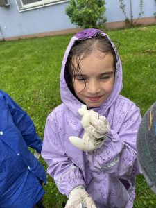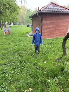 Ve škole jsme se věnovali také výrobě pampeliškového sirupu, a i když se kvůli počasí většina aktivit přesunula pod střechu, práce na školní zahradě se zcela nezastavila – děti se s nadšením pustily do péče o trvalkové záhony, které i v dešti potřebují pozornost.