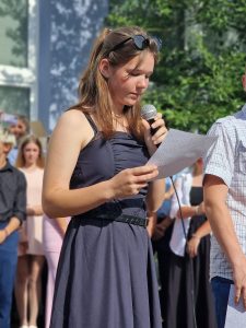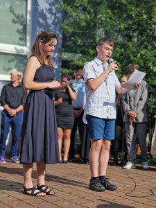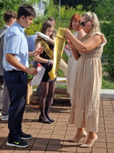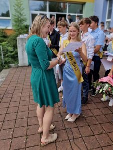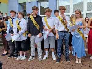 A v pátek se již opravdu naposledy představili před všemi pedagogy a žáky při slavnostním nástupu v atriu školy. V projevech žáků i pedagogů se vzpomínalo, hodnotilo a hlavně děkovalo, což dojalo nejednoho přítomného. Žáci obdrželi absolventské šerpy, pamětní listy a plechové hrnečky s logem a názvem školy. Na fotografie z tohoto slavnostního vyřazování žáků devátých tříd se můžete podívat v galerii pod příspěvkem.