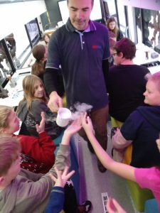Dopoledního programu se zúčastnila 8.B, která si vyzkoušela práci s termokamerami a žáci tříd 4.B s 5.A se na chvíli stali čaroději a čarodějnicemi a „sucholedokouzlili“.