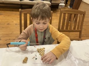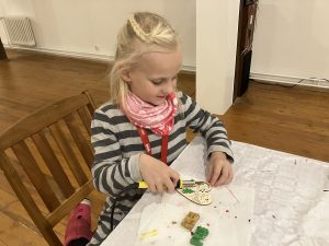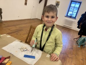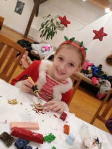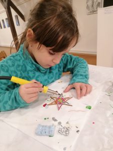 Během setkání si děti společně procvičily práci s enkaustickým perem, kdy si vytvořily vánoční baňku nebo dřevěnou ozdobu, která byla na závěr dozdobena třpytivými glitry.