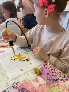 Ve školní družině jsme zažili výtvarné odpoledne plné barev. Děti si vyzkoušely techniku enkaustiky pomocí enkaustických per – speciálních nástrojů, kterými se vosk nanáší.