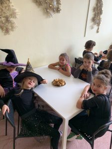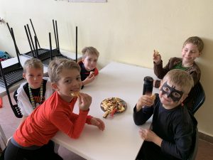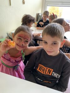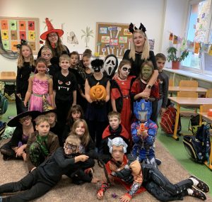 Druháci začali s halloweenskými aktivitami již před prázdninami. Jednoho dne je ve třídě čekala stanoviště plná tematických úkolů – luštění zaklínadel paní čarodějky, rozmáčknutí dýně aneb najdi rýmy, podzimní čtení s porozuměním, kouzelné malování z Harryho Pottera a rozmáčknutí dýně aneb první hláska ve slově. Na návštěvu do hodiny přišel i pan ředitel, který si s dětmi popovídal a děti mu tak mohly ukázat, na jakých úkolech pracují a jak jim to jde.