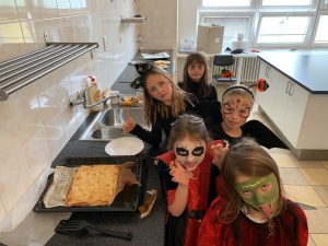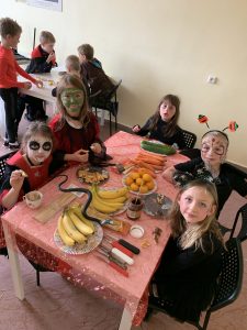 Po prázdninách jsme si pro děti s paní asistentkou připravily překvapení ve formě halloweenského pečení. Děti se v tento den proměnily na kuchtíky a ve skupinách si vyzkoušely upéct z listového těsta sladké dýně a slané pizza pochutiny. Z banánů jsme si vytvořili duchy a z mandarinek krásné dýně. Mrkněte, jak se nám společně dařilo.