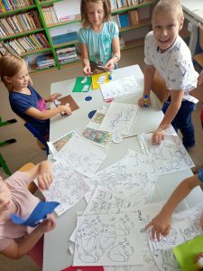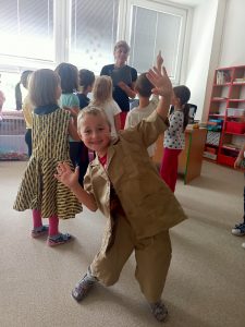 V úvodu povídání měly děti za úkol rozklíčovat cizí slova FAIR – TRADE, zahrály si společnou hru a následovalo krátké video o tom, jak se žije pěstitelům kakaa. Paní lektorka osobně Afriku i plantáže navštívila a proto dětem ukázala plátěnou mapu Afriky, uniformy dětí, psací tabulky a dále pak děti mohly ochutnat kakaové boby.