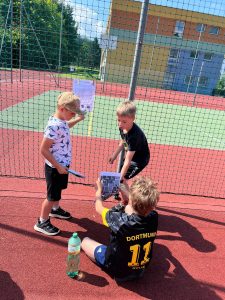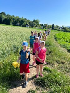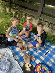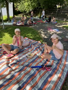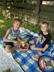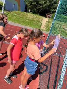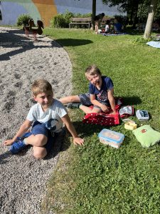 Slunečné počasí nám přálo po celou dobu, a tak si děti mohly užít společný snídaňový piknik na čerstvém vzduchu. Deky rozprostřené na trávě se zaplnily dobrotami, které si děti samy přinesly. Nebyla by to ale ta správná tečka za rokem bez trochy dobrodružství! Děti se pustily do venkovní únikové hry, kde musely společně přemýšlet, luštit hádanky a spolupracovat, aby se dostaly do posledních dveří otevírající vstup do 3. třídy.