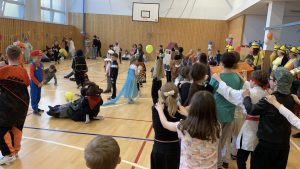 Zahájení karnevalového dne proběhlo ve třídách. Poté se děti postupně střídaly v tělocvičnách, kde si pro všechny kamarády od přípravné třídy až po 4. ročníky připravili páťáci krásný program. Všichni si vyzkoušeli spoustu zábavných soutěží a her. Děti soutěžily s nadšením a velkým nasazením, ale především s úsměvem na tváři. Cílem nebylo vyhrát, ale užít si společný čas a radost z pohybu.