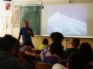 Své poutavé příběhy doplnil o fotky a videa z vrcholů hor a nastínil nám krásy a úskalí tohoto extrémního sportu. Žáci měli možnost s Markem také diskutovat a pokládat mu otázky na tělo, na které velmi ochotně odpovídal. Děkujeme mu za návštěvu a těšíme se na další shledání.
