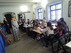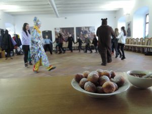 5.A nastoupila ve středu 19.2. do autobusu směr Nový Jičín, aby zde v Žerotínském zámku oslavila masopust.