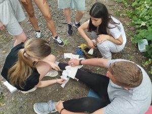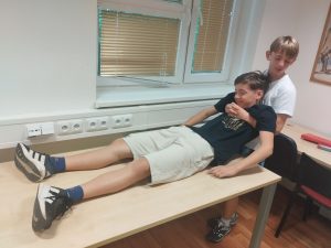 Na závěr poskytli organizátoři každé skupině zpětnou vazbu k jejich postupu. Všichni žáci si zároveň mohli prakticky vyzkoušet klíčové dovednosti jako jsou převazování krvácejících ran, manipulace se zraněnými a nepřímá srdeční masáž.