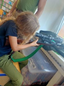 Děti se dozvěděly spoustu zajímavých informací ohledně revíru, co nenosit zvířátkům do krmelců nebo jaká zvěř se loví. Na vlastní oči se mohly podívat na „trofeje“ a pomocí hádanky také přijít na to, ze které zvěře pochází (srnec, daněk, jelen). Na závěr si děti poslechly, jak myslivci vábí zvěř a vyzkoušely si, co myslivci vidí ve svém puškohledu.