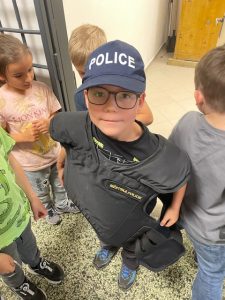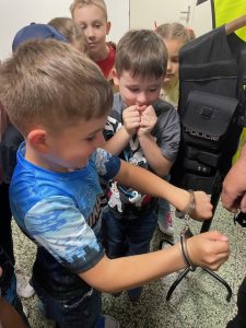Pan strážník dětem srozumitelně vysvětlil, jak vypadá jejich běžný pracovní den, co všechno obnáší zajišťování bezpečnosti a veřejného pořádku a jakým způsobem pomáhají občanům. Děti se ptaly na různé situace, se kterými se policisté setkávají.