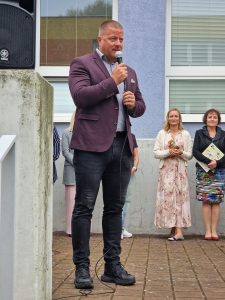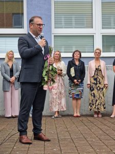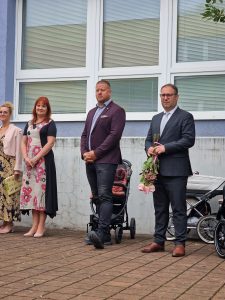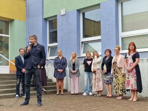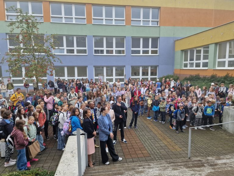 Slavnostní zahájení proběhlo ve 2 etapách, v 8.00 proběhlo společné setkání pro žáky 2. – 9. ročníku a všech jejich vyučujících a od 9.00 se pak také v atriu školy uskutečnilo slavnostní zahájení školního roku také pro žáky 1. tříd a děti z přípravné třídy. Svou návštěvou nás poctili také zástupci zřizovatele, a to přímo pan starosta města Adam Hanus a spolu s ním také pan místostarosta David Monsport, který je zároveň garantem pro oblast školství.