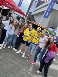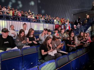 Po návštěvě fanzóny jsme se plni nadšení přesunuli do sportovní arény, kde nás čekalo fandění přímo u ledu. Atmosféra v hale byla nepopsatelná – hlasité povzbuzování, napínavé momenty a skvělé výkony hráčů nás všechny vtáhly do dění zápasu. Naše fandění neznalo hranic a byli jsme rádi, že můžeme být součástí takto velké sportovní události.