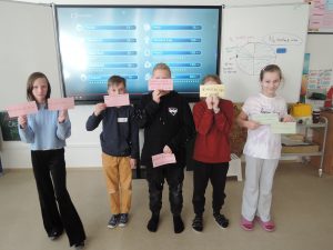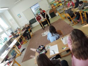 V 5.A se tento týden ve středu diskutovalo na téma plýtvání potravinami. Přijela za námi lektorka Johanka Krajčírová z organizace ARPOK z Olomouce, která se věnuje globálním tématům a děti se mohly dozvědět např. o tom, kolik utrácejí rodiny napříč planetou za potraviny či jak jsou na tom samy u sebe doma.