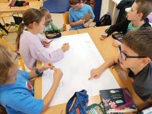 V poslední části projektového dne si skupiny vytvořily vlastní „zemi emocí“. Každá skupina ji pojmenovala, vymyslela jak vypadá a představila ostatním. V závěru nechyběla sebereflexe – děti hodnotily, jak se jim ve skupině spolupracovalo, co se jim dařilo, co bylo těžší, a co je na aktivitě nejvíc bavilo.