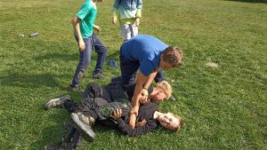 Třetí a poslední dopoledne na adaptačním kurzu ve Spálovském mlýně začalo bohatou švédskou snídaní, po které jsme se pustili do balení a úklidu chatiček. Následoval ještě jeden blok her, tentokrát výrazně sportovnějšího charakteru – nechyběla energie, týmový duch ani smích.