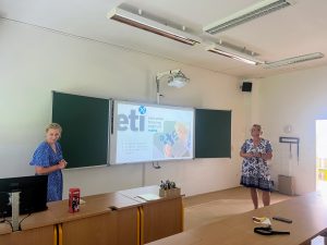 Své zkušenosti ze sledování výuky na partnerské základní škole Grundschule im Beerwinkel v Německu prezentovala paní Váňová spolu s paní Zvaríkovou. O absolvovaném kurzu v Portugalsku, který byl zaměřen na zvládání konfliktních situací ve škole, hovořil pan Pospěch. Pan Štěpán se podělil o zkušenosti, které nabyl v kurzu Základy programovania a robotiky na Slovensku. Jak obohatit výuku anglického jazyka, ať inovativními metodami, nebo využitím ICT ve výuce, přiblížila paní Zvaríková z dvou absolvovaných kurzů v Itálii. Kurz angličtiny v jazykové škole ETI Malta a zážitky z pobytu zúčastněným přiblížily paní vychovatelky Zajíčková a Jadrníčková. Co je to případové učení, tedy Based-Cased Learning, se ve Španělsku dozvěděla paní Tembo. Nové aplikace, využití umělé inteligence a 3D tisku do své výuky po absolvování metodického kurzu zaměřeného na tuto problematiku hodlá zařadit paní učitelka Holubová.