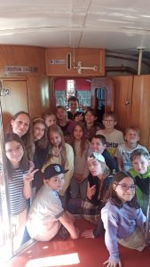 Žáci 4. A využili možnost zúčastnit se výukového programu v depozitáři Slovenské strely. Při plnění úkolů se dozvěděli, že „Strelu“ řídil řidič a ne strojvedoucí, že její rychlost překonalo v Čechách až Pendolino po roce 2005, že trasa „Strely“ vedla z Bratislavy do Vídně a zpět a že to byl ve své době nejluxusnější vlak a mnoho dalších zajímavých informací. Na závěr programu se žáci mohli podívat dovnitř, kde je ohromil nádherný interiér.