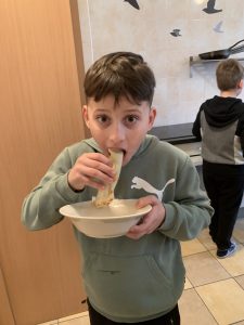 V rámci wellbeingového týdne si žáci 4. B užili společnou snídani plnou skvělých chutí a dobré nálady. Každý přinesl něco dobrého, a tak si mohli společně v kuchyňce připravit bohatý snídaňový raut. Společné stolování bylo nejen příjemným začátkem dne, ale také krásnou ukázkou spolupráce a vzájemné sounáležitosti.
