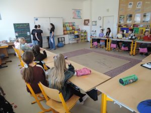 Téma peer programů využila v letošním školním roce 2024/2025 i naše základní škola. Dobrovolníci z osmých, sedmých a šestých tříd si vybrali ekologické téma a zrealizovali tak tzv. “ekopeer” pro naše žáky a žáky ZŠ dr. Milady Horákové v Kopřivnici. Žáci osmých tříd se zaměřili na problematiku klimatických změn, žačky sedmých tříd na ekoodpad a žačky tříd šestých pak využily příběh Krtečka a jeho výrobu džínů. Jednotlivé programy čerpaly inspiraci z metodiky Světové školy a z vlastních aktivit žáků.