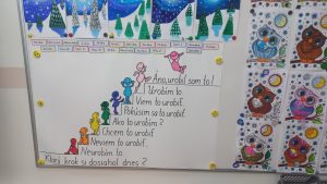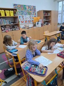 Ráno jsme vyrazili do školy, kde se děti aktivně zapojily do výuky – našly si nové kamarády, učily se slovenský jazyk, řešily matematické úlohy, aplikovaly anglický jazyk, malovaly ve výtvarné výchově a také měly možnost si prakticky vyzkoušet digitální pomůcku Classwise, ze které byly nadšené.