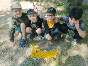 Krásné jarní počasí vybízí k učení venku. Hodiny předmětu člověk a jeho svět, tělesná výchova, český jazyk, hudební výchova a další prožíváme radostněji, když můžeme třídu vyměnit za venkovní prostory.