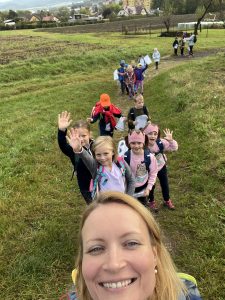 V pátek 13.10.2023 jsme využili krásné podzimní počasí a vydali jsme se s třídou 1.A na podzimní pátračku. Hlavním tématem byl podzim. Na podzimní pátračku jsme se však nevydali sami. S sebou jsme do batůžku vzali i našeho třídního maskota lvíčka Simba, který nás pozorně celý den hlídal a kontroloval.
