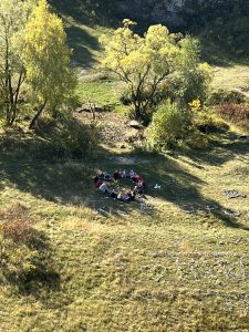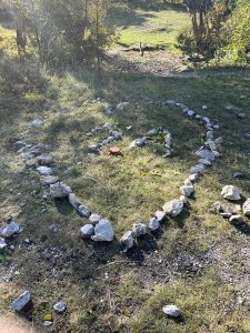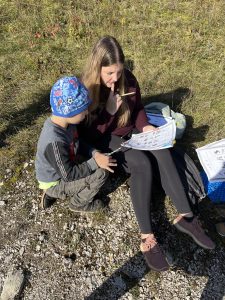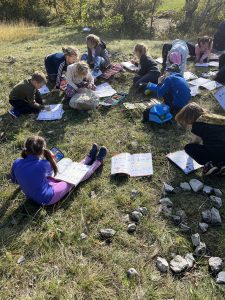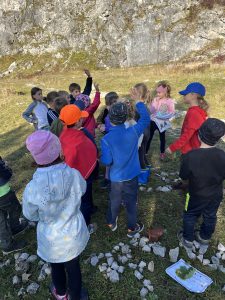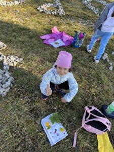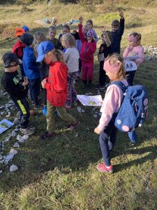 Děti na začátku cesty dostaly pracovní listy, ve kterých se nacházelo celkem 5 úkolů. Během celého dopoledne jsme také propojili mezipředmětové vztahy, konkrétně matematiku, český jazyk, výtvarnou výchovu, prvouku, tělocvik a další. V rámci bonusového úkolu se měly děti společně domluvit a sestavit kooperativní obraz z nasbíraných přírodnin a kamenů. Odhlasovaly si tvar srdce, do kterého vymodelovaly 1.A. Podívejte se a posuďte sami, jak se práce žákům povedla 🙂