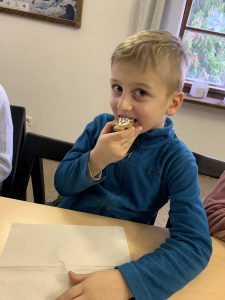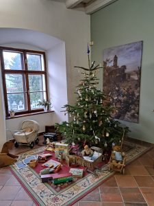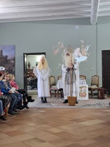A jelikož to byl den, kdy naděluje sv. Mikuláš, navštívil je i s andělem přímo na zámku. Společně s Mikulášem a andělem si děti zazpívaly vánoční koledy. A protože se jim to povedlo, dostaly od anděla malý andělský perníček.
