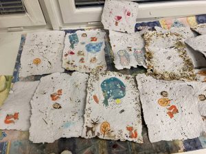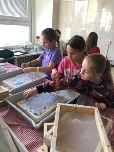 Vše pak vyvrcholilo výrobou ručního papíru a výsledky můžete posoudit sami. Děkujeme lektorkám za přátelský přístup, trpělivost a mnoho zajímavých informací.