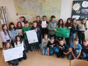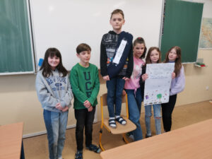 Ve společenské výchově se žáci zabývali tématem obce, v rámci kterého mezi sebou volili svého starostu. Kandidáti na tuto pozici měli za úkol se svými týmy vymyslet takový volební program, který podporuje životní prostředí v jejich okolí a je realizovatelný v rámci třídy.